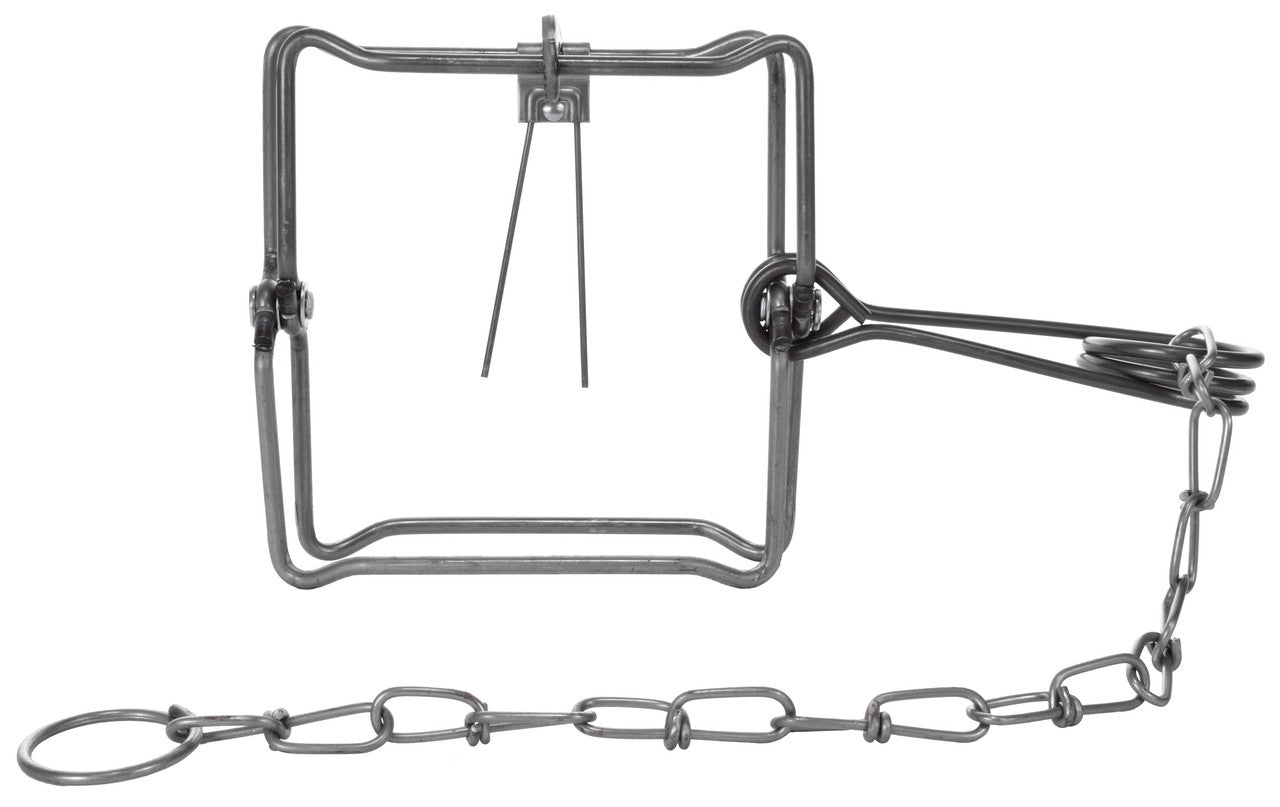 This trap features a 5" jaw spread. The single spring has a small spring eye to keep the jaws closed tight when the trap is fired. A perfect trap where a slightly larger trap is needed for a muskrat run or mink trail set. An excellent dog and trigger that provides a nice crisp fire.