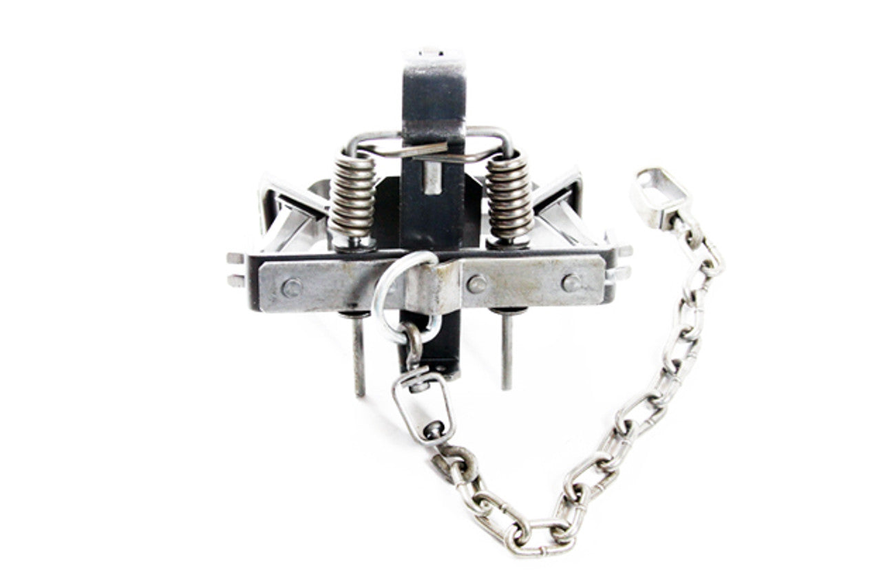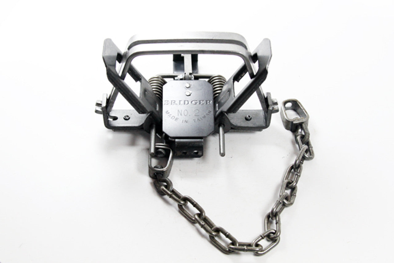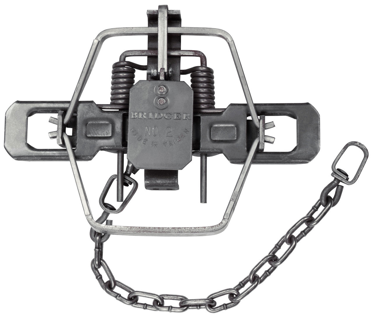 The Bridger #2 Offset Coilspring Square Jaw comes stock with heavy swivels, quality straight link machine chain, music wire springs, and an added baseplate with D-Ring. A heavy duty trap for coyotes and bobcat. Available in 2-coil or 4-coil springs.