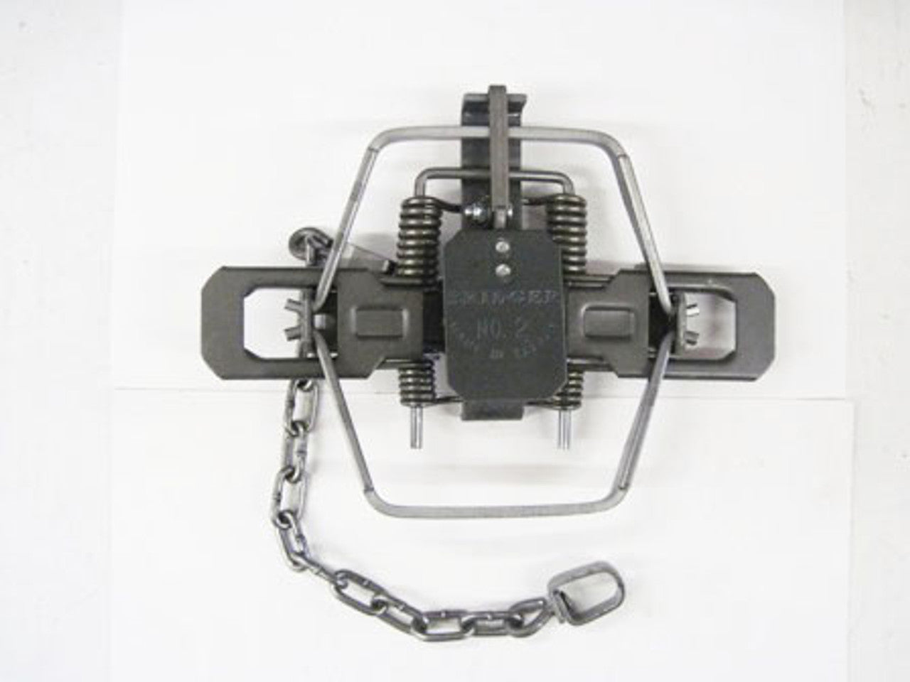 The Bridger #2 Offset Coilspring Square Jaw comes stock with heavy swivels, quality straight link machine chain, music wire springs, and an added baseplate with D-Ring. A heavy duty trap for coyotes and bobcat. Available in 2-coil or 4-coil springs.