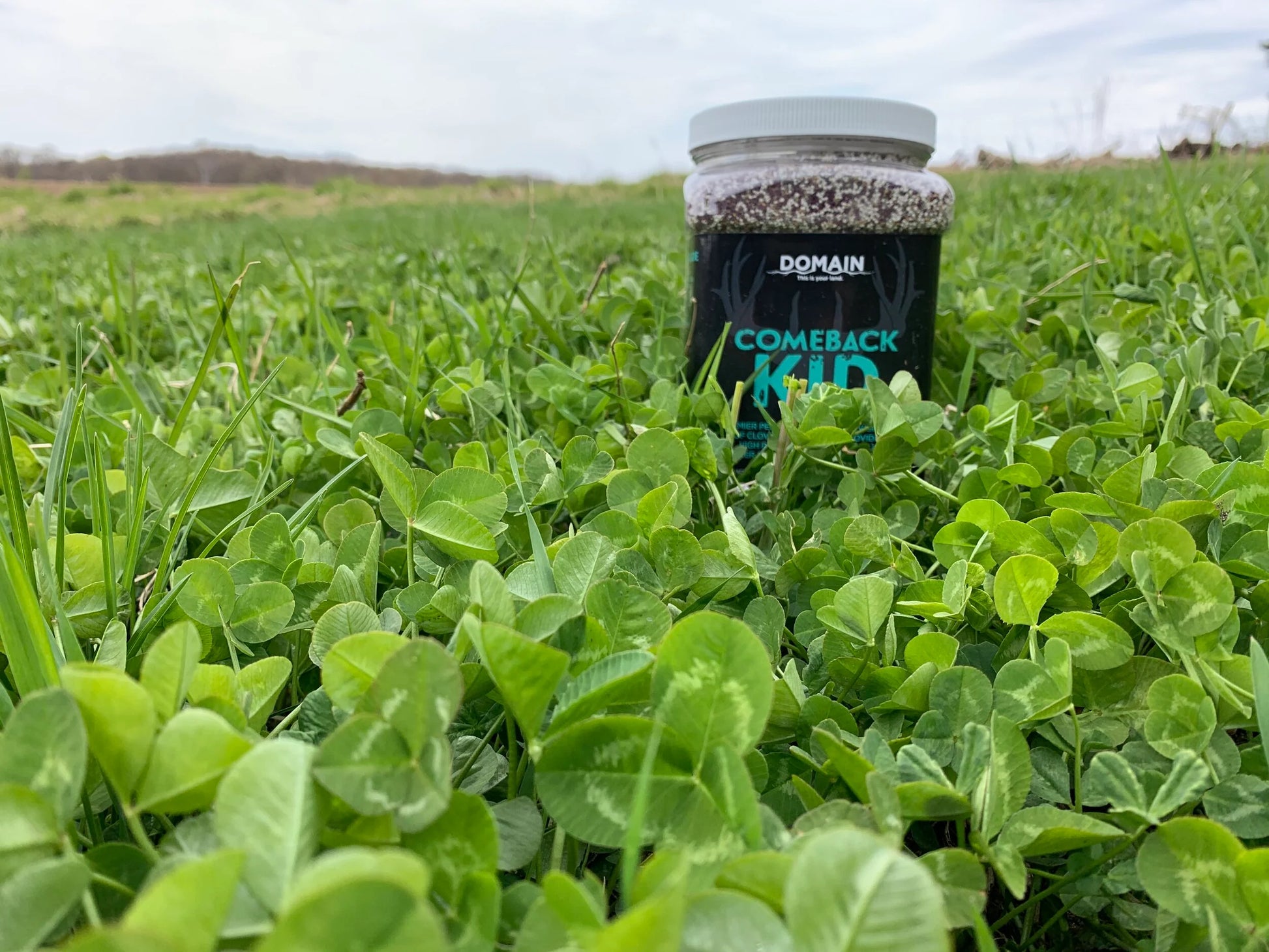 LOADED WITH A MIXTURE OF COLD SEASON PERENNIALS AND ANNUALS, THIS PROTEIN-RICH, TONNAGE PRODUCING CLOVER MIX IS DESIGNED FOR YEAR-ROUND FOOD PRODUCTION AND ATTRACTION FOR DEER AND TURKEY. BY COMBINING SPECIAL VARIETIES OF CLOVER AND ALFALFA WE HAVE CREATED A PERENNIAL MIX THAT WILL ESTABLISH QUICKLY AND LAST UP TO 5 YEARS. COMEBACK KID CONTAINS 4 SPECIAL VARIETIES OF CLOVER AND 1 VARIETY OF ALFALFA TO CREATE AN ABSOLUTE DEER MAGNET PROVIDING FORAGES WITH PROTEIN LEVELS ABOVE 30%. WHEN YOUR CLOVER PLANTS BEGIN TO FLOWER IT SIGNALS THEIR MATURITY, MAKING IT A GREAT TIME TO MOW THE PLOT DOWN TO 6-8”. PERIODIC MOWING HELPS ELIMINATE UNWANTED WEEDS AND GENERATES RE-GROWTH OF THE CLOVER AND ALFALFA, KEEPING THEM STRONG AND HEALTHY. IT’S DURING THIS GROWTH STAGE THAT YOUR COMEBACK KID FOOD PLOT WILL PROVIDE THE HIGHEST LEVEL OF NUTRITION AND DEER ACTIVITY. COMEBACK KID IS DESIGNED TO BE THE FOUNDATION OF YOUR FOOD PLOT PROGRAM, AS IT PROVIDES THE BACKBONE OF DEER NUTRITION WITH IT’S HIGH PROTEIN FORAGES, WILL BE THE FIRST TO GERMINATE IN THE SPRING AND IS EXTREMELY COLD TOLERANT INTO THE DEAD OF A NORTHERN WINTER…COMEBACK KID CAN PLAY AN INTEGRAL ROLE IN THE HEALTH OF YOUR HERD AND THE SUCCESS OF YOUR FOOD PLOT PROGRAM.