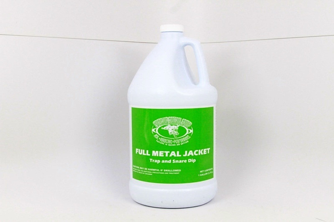 Full Metal Jacket Trap & Snare Dip is a clear dip that wears like iron. After 24 hours Full Metal Jacket is odor free. It is a trap dip for predator traps, land body grip traps and snares. You can use this dip in the water too, but will get a milky color. It will still protect and seal in the metal from rust in the water, but you will need to scrape your trigger and dog.