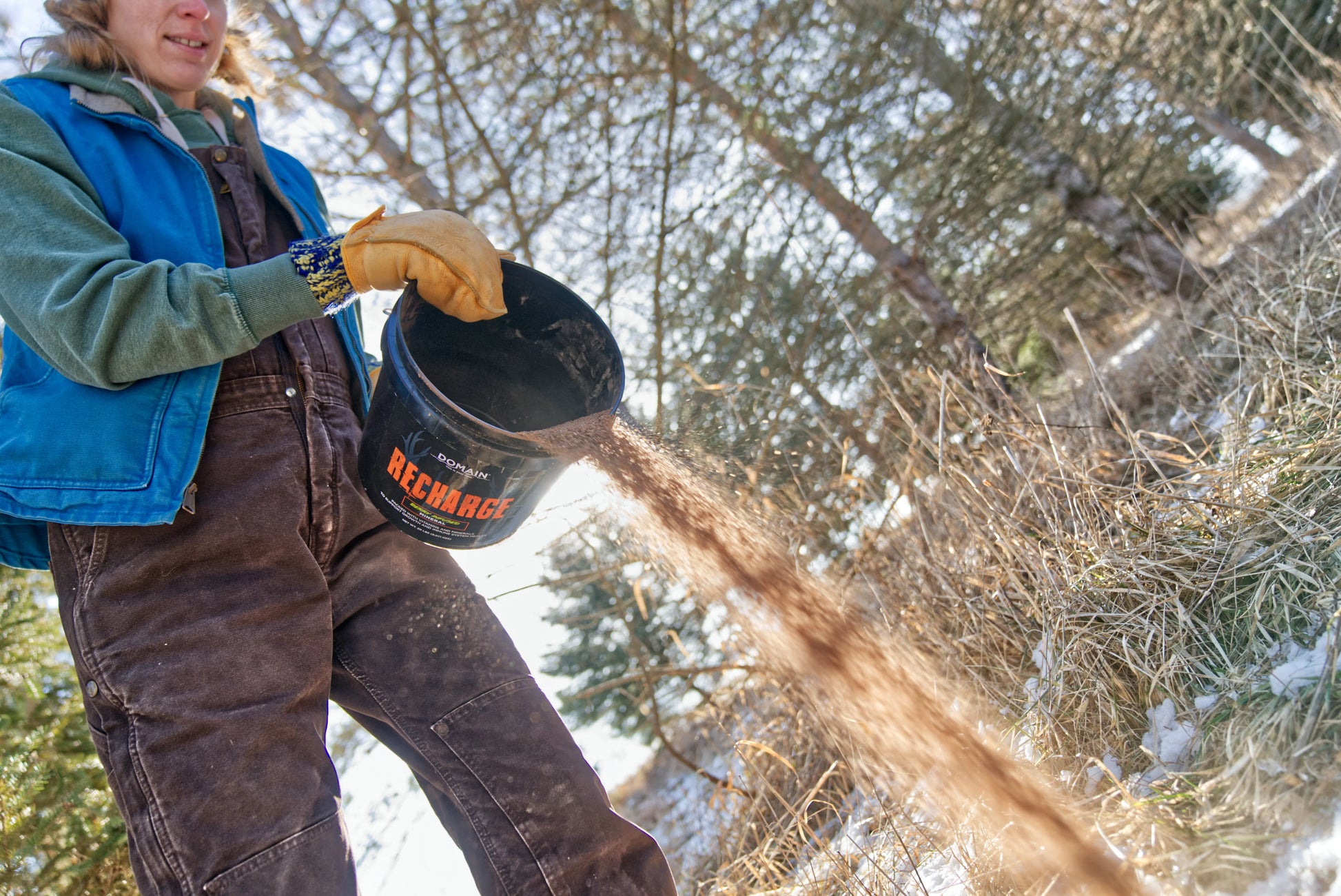 DOMAIN’S RECHARGE DEER MINERAL IS A SPECIALLY FORMULATED MINERAL-BASED MULTI-VITAMIN SUPPLEMENT DESIGNED TO SUPPORT GROWTH AND IMMUNE SYSTEM HEALTH. ENHANCED WITH BERRY INFUSED FLAVORING AND AROMA, RECHARGE IS HIGHLY DIGESTIBLE AND PROVIDES MAXIMUM NUTRIENT AVAILABILITY AND ABSORPTION. RECHARGE OFFERS YOUR DEER HERD A WELL-ROUNDED MINERAL AND VITAMIN SUPPLEMENT TO SUPPORT OVERALL HERD HEALTH AND CAN PLAY A KEY ROLE IN YOUR YEAR ROUND DEER MANAGEMENT PROGRAM. POUR ONE BAG OF RECHARGE DEER MINERAL DIRECTLY ON THE GROUND OR AN OLD STUMP AND REFRESH EVERY 2-3 WEEKS. GREATEST CONSUMPTION WILL OCCUR FROM MARCH THROUGH AUGUST AS ANTLERS AND FAWNS ARE GROWING, ALTHOUGH IT IS RECOMMENDED TO OFFER IT FREE-CHOICE ON A YEAR ROUND BASIS.