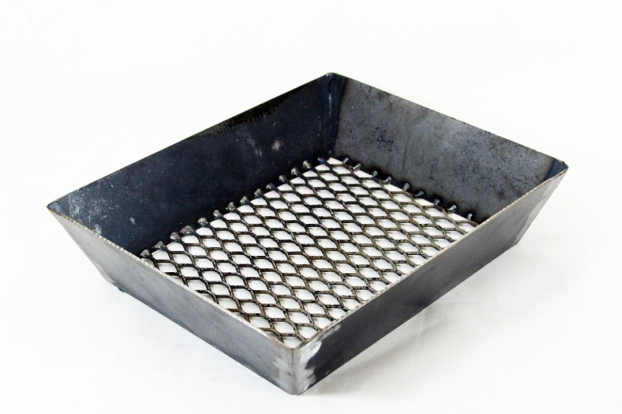 This sifter’s framework is LASER CUT from 14 gauge steel. Each corner has been welded and then ground clean and smooth, there are no sharp edges. The bottom screen is a heavy gauge, stepped mesh that shreds sod and breaks up dirt faster than a smooth mesh. It has a 3/4 x 1/4 inch diamond mesh pattern. The bottom of the sifter measures 6 1/2 x 8 1/2 inches. All four sides are tapered which allows you to use any side for scraping and scooping up dirt.